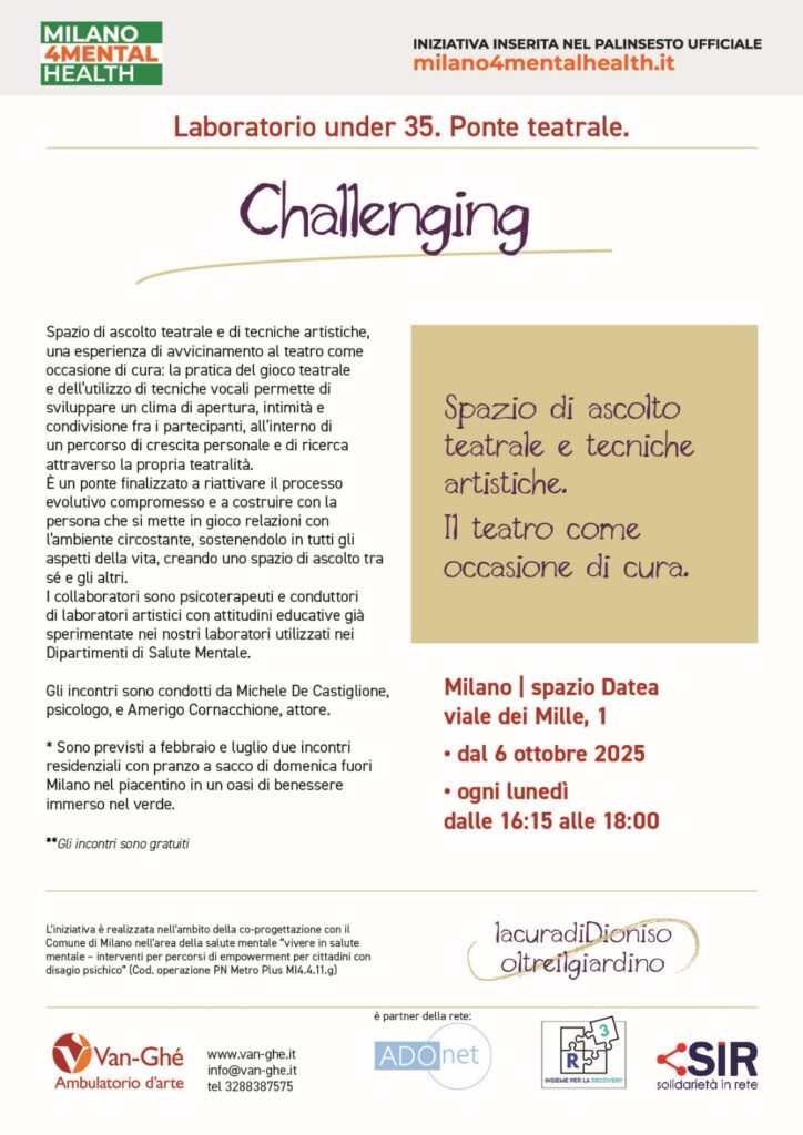 Uno spazio di ascolto teatrale e tecniche artistiche, inteso come un’esperienza di avvicinamento al teatro come occasione di cura, per la salute mentale, nell’ambito di Milano 4 Mental Health.