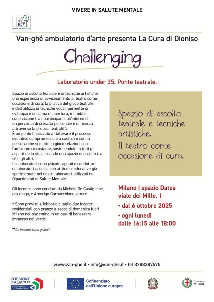 Uno spazio di ascolto teatrale e tecniche artistiche, inteso come un’esperienza di avvicinamento al teatro come occasione di cura, per la salute mentale, nell’ambito di Milano 4 Mental Health.